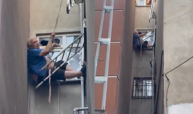 Olay, geçtiğimiz Perşembe günü saat 19.00 sıralarında Kağıthane Hürriyet Mahallesi’nde meydana geldi. Edinilen bilgiye göre akşam saatlerinde boru döşemek için çatıya çıkan 60 yaşlarındaki Hakkı isimli adam tamirata başladı. Hiçbir önlem almadan çatıya çalışan adam, ayağı kayması sonucu dengesini kaybederek aşağıya düşerken bir ipe tutunarak iki duvar arasında kendisini sıkıştırdı.Havada asılı kalan adamı itfaiye kurtardıAdamın bağırarak yardım istemesi üzerine gelen vatandaşlar, itfaiye ekiplerine ihbarda bulundu. İhbar üzerine gelen itfaiye ekipleri, adamı kurtarmak için çalışmalara başladı. Yan dairenin penceresinden müdahale eden itfaiye ekibi, adamı güç bela kurtardı. Yaralanan adam, sağlık ekiplerinin ilk müdahalesi sonrası ambulansla hastaneye kaldırıldı. Vatandaşlar ise o anları telefonları ile kayda aldı. Yaşananlar ise kameralara yansıdı. Olayla ilgili konuşan Cüneyt Yarışan, gördüğü manzara karşısında şaşırdığını ifade etti.