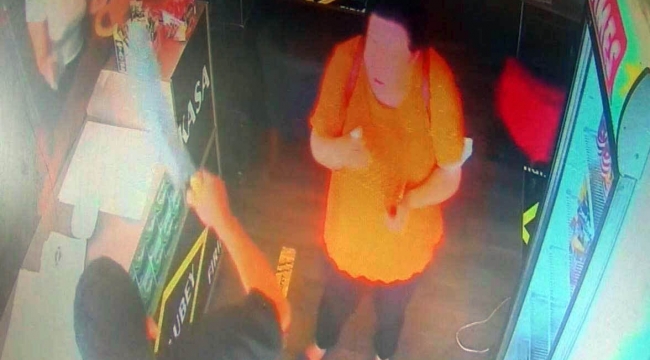 bıçağı alıp geliyor ve saldırıyor. Zorla birkaç parça ürün alıyor ve kaçıyor.