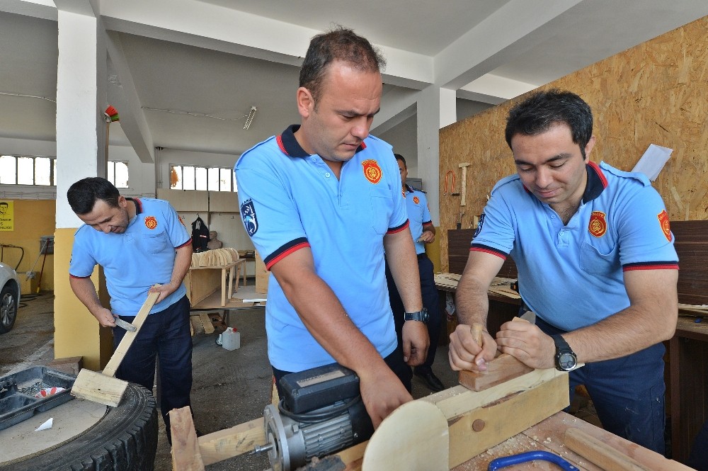 Ankara Büyükşehir Belediyesi İtfaiye Dairesi Başkanlığı personeli, merkezde kurdukları atölyede yaptıkları ahşap oymacılığı çalışması ile günün yorgunluğu ve stresini atıyor.