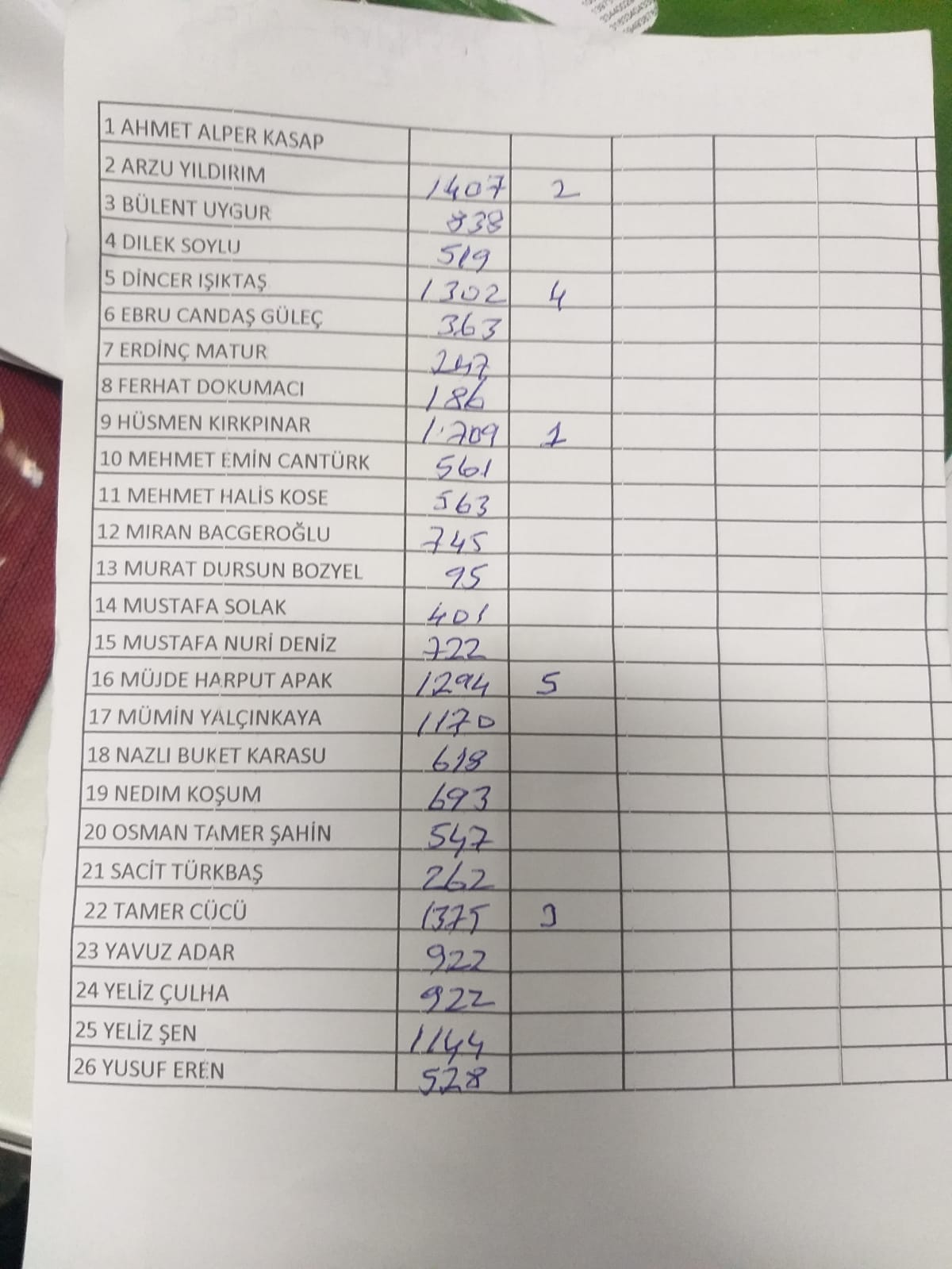 1375 oy alan Tamer Cücü'yü 1303 oy alan Dinçer Işıktaş, 1292 oy alan Müjde Harput Apak ile 1171 oy alan Mümin Yalçınkaya takip etti.