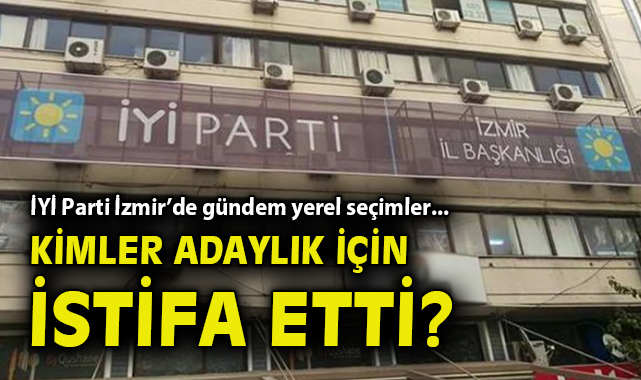 İYİ Parti İzmir İl Başkanı Sinan Bezircilioğlu, Bayraklı İlçe Başkanı Erdinç Çobanoğlu, Tire İlçe Başkanı Yüksel Şenyurt, Narlıdere İlçe Başkanı Feza Genişoğlu, Ödemiş İlçe Başkanı Güven Kılıç ve Bayındır İlçe Başkanı İlçe İbrahim Gedik’in istifa ettiğini açıkladı.