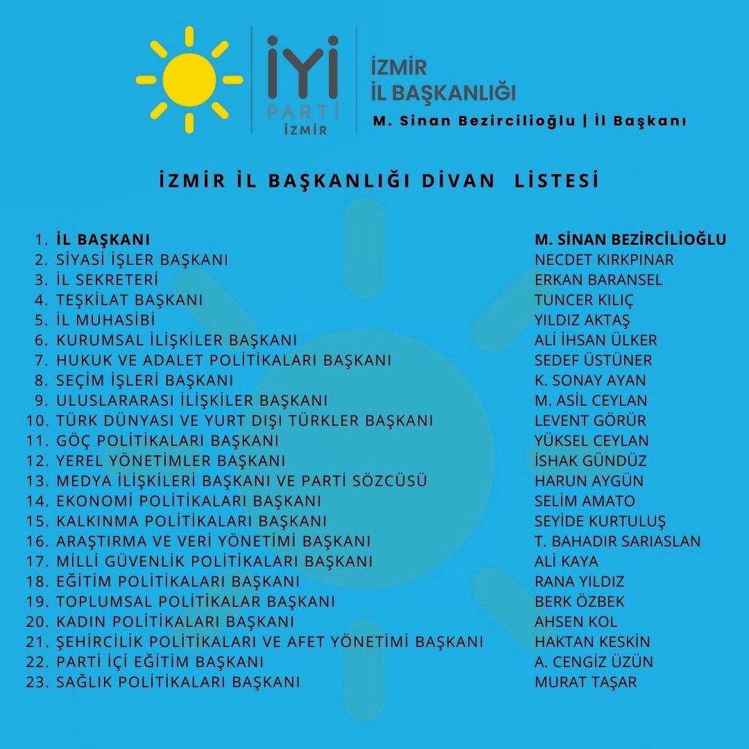 İYİ Parti İzmir’in yeni A takımından şu isimler yer aldı;