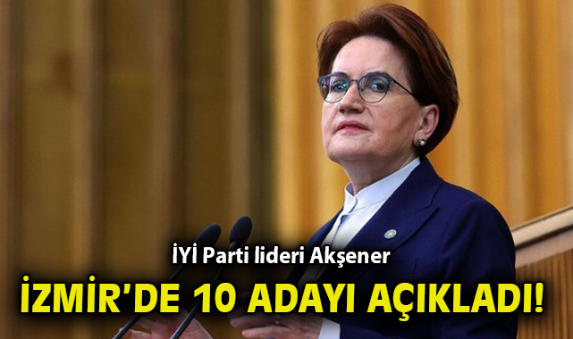 İYİ Parti Genel Başkanı Meral Akşener partinin grup toplantısında İzmir'den 10 ilçe adayını da açıkladı. Buna göre 2024 yerel seçim sandığında partiyi Balçova, Bayındır, Bergama, Çiğli, Gaziemir, Güzelbahçe, Karaburun, Kemalpaşa, Ödemiş ve Torbalı temsil edecek isimler belli oldu. İşte İYİ Parti'nin açıklanan adayları: Balçova: Hicran Helezür