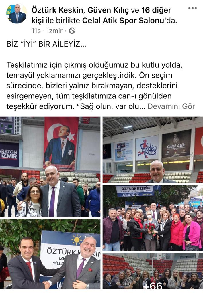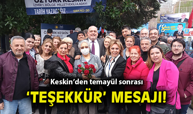 Temayül sonrası sosyal medya hesabından paylaşımda bulunan Keskin, “Biz “İYİ” bir aileyiz… Teşkilatımız için çıkmış olduğumuz bu kutlu yolda, temayül yoklamamızı gerçekleştirdik. Ön seçim sürecinde, bizleri yalnız bırakmayan, desteklerini esirgemeyen, tüm teşkilatımıza can-ı gönülden teşekkür ediyorum. “Sağ olun, var olun; iyi ki varsınız!” Bu saatten sonra Genel Başkanımız Sayın Meral Akşener’e, İzmir’in anahtarını verme zamanıdır. Bunu yapabilecek güçteyiz. Saygı ve sevgilerimle...” ifadelerini kullandı.