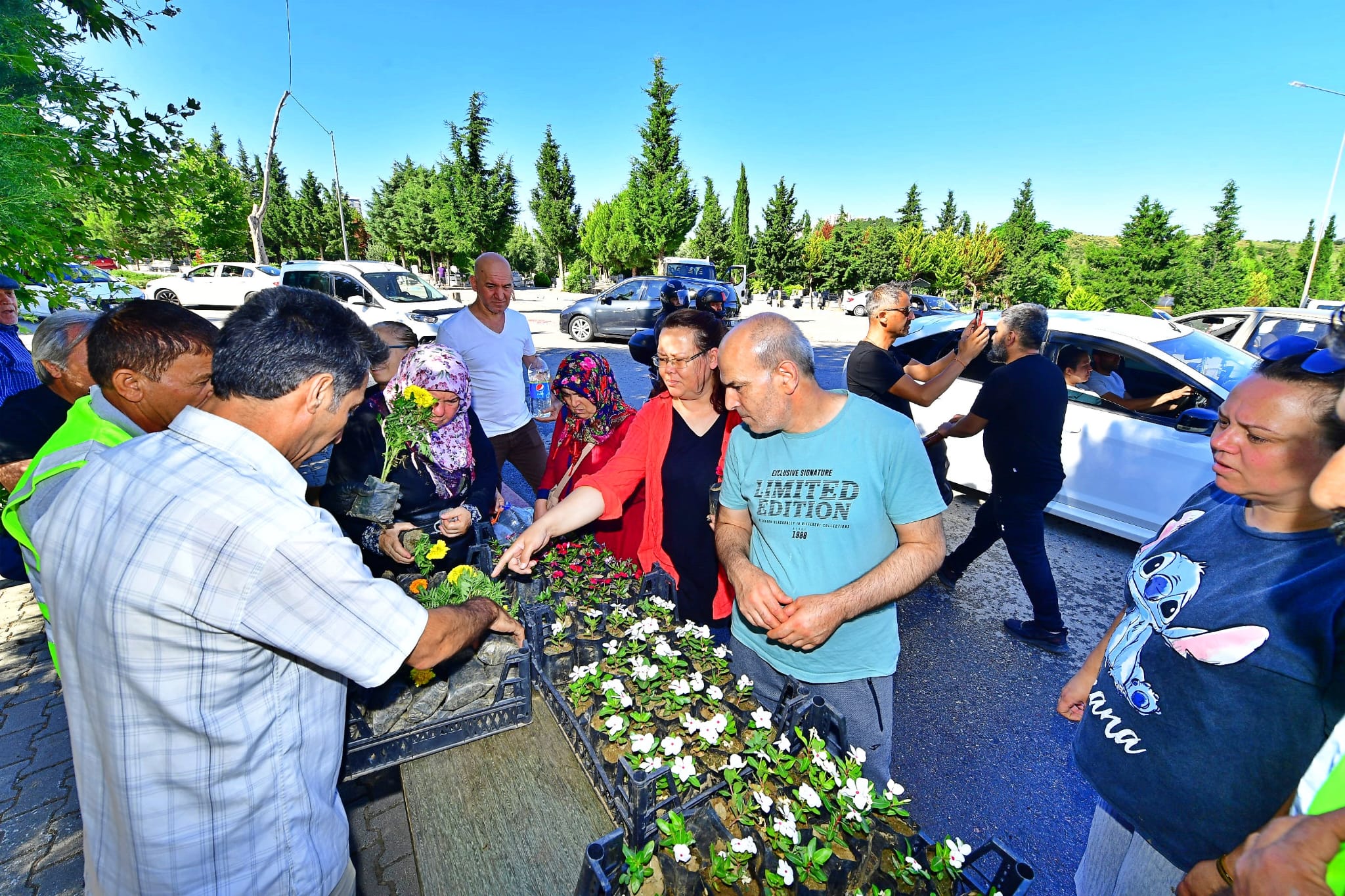 Kurban Bayramı öncesinde mezarlıkları ziyaret ederek kaybettikleri yakınlarını anan İzmirliler, İzmir Büyükşehir Belediyesi’nin ücretsiz çiçek sürprizi ile güne başladı. Bayraklı Doğançay Mezarlığı, Bornova Hacılarkırı Mezarlığı, Buca Kaynaklar Mezarlığı, Narlıdere Yukarı Mezarlığı ile Selçuk Merkez Mezarlığı’nda İzmir Büyükşehir Belediyesi ekipleri vatandaşlara ücretsiz çiçek dağıttı. Dağıtılan rengarenk çiçekleri yakınlarının mezarlarına diken vatandaşlar hizmetten memnun olduklarını söyledi.