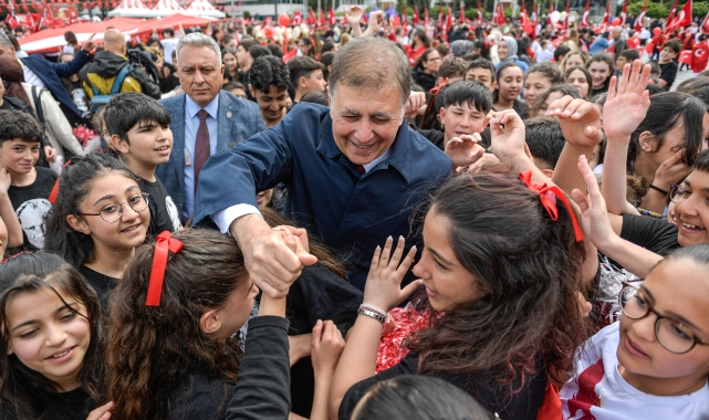 Kortej sonrası basın mensuplarına açıklamalarda bulunan Başkan Tugay, “Kültürpark’ın içerisindeki bir alanı çocuk şenlik alanı olarak düzenledik ve bugün pek çok etkinlikle çocuklara bir bayram sevinci yaşatmaya çalışıyoruz. Bir köşesinde de çocuklar için ikinci el pazarı kurduk. Ve ben de demin aldım birkaç oyuncak. Artık oynamadıkları oyuncaklarını, okumuş oldukları kitaplarını standlarda satıyorlar. Bir taraftan uygun fiyatlı birbirleriyle alışveriş yapıyorlar bir taraftan da evde artık kullanamayan eşyaları yeniden değerlendirme şansları oluyor. Yani bir şeyi atmak değil de onun yeniden kullanma kültürü. Oynanmayan oyuncaklar oynanıyor ya da okunmayan bir kitap okunuyor. Bu değerli bir kültür. Karşıyaka'da başlatmıştık bunu, çocuklarımız onu çok ilgi göstermişti. Burada da gördüğüm 120 civarında çocuk stant açmış. Ve bu ilki. Bundan sonra belki başka zamanlarda tekrarlarını da yapacaklar. Çocuklara bir şeyleri küçük yaştan aşılamaya çalışıyoruz. Böyle bilinçli olmayı, biraz eşyasıyla bilinç sahibi olmayı, yeniden değerlendirme kültürünü… Ben bugün Bayramını kutlarken onlarla birlikte olmaktan çok mutluyum gerçekten. Zaman zaman çok duygulandım. Çocuklarımızın hepsi dünya güzeli, hepsi çok iyi bir geleceği hak ediyorlar. Hiçbirine kıyamayız. Her birisi birbirinden değerli. Biliyoruz ki ülkemiz gerçekten iyi olması lazım. Çocuklarımız için en çok onlar için bunun için bana düşen görevler mutlaka var ama bu ülkede benden daha çok görev düşen pek çok insan var. Umuyorum akıllarını başına toplarlar. Bir an önce de bu yanlış işleri yapmaktan vazgeçerler” dedi.
