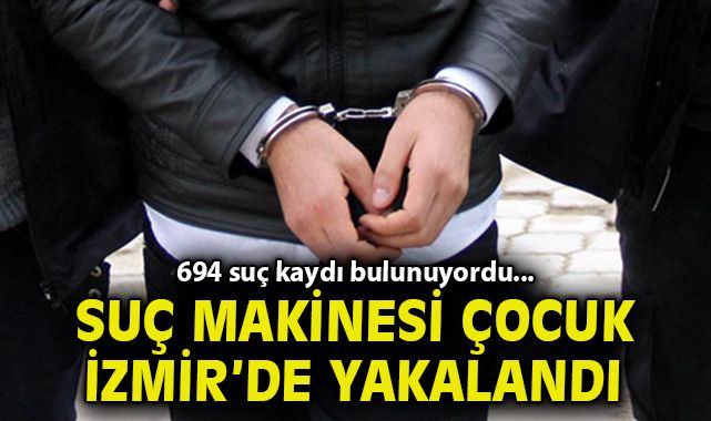 İzmir’de, 694 suç kaydı bulunan ve hakkında 285 yıl 1 ay 16 gün kesilmiş hapis cezası olan suç makinesi 16 yaşındaki çocuk, polis ekiplerince yakalandı.