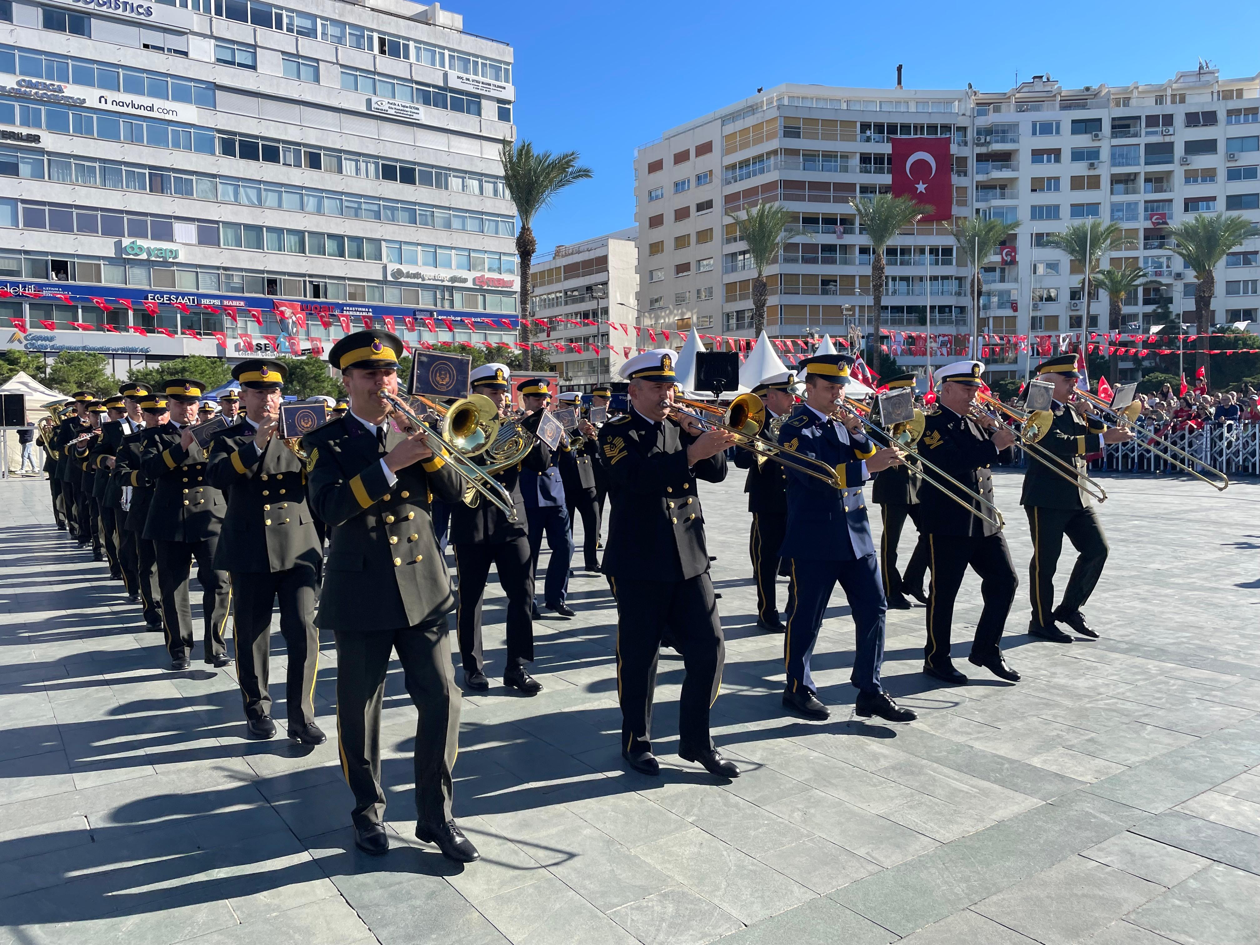 İzmir Valiliği tarafından Cumhuriyet Meydanında düzenlenen tören, İzmir Valisi Süleyman Elban ve İzmir Büyükşehir Belediye Başkanı Dr. Cemil Tugay askeri araç üzerinden katılımcıları selamlayarak başladı.