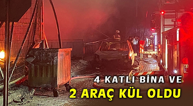Bayındır'da 4 katlı binada çıkan yangında, bina ile birlikte binanın önündeki araçlar da hasar gördü.