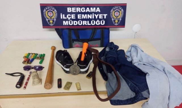 Bergama İlçe Emniyet Müdürlüğü ekipleri, ilçede çalışmalarına hız kesmeden devam ediyor. Ekipler, farklı ilçeden geldikleri ve çok sayıda hırsızlık kaydı olduğu öğrenilen şüpheliler E.T. ve H.T.’yi takibe aldı. İki hırsız gece saatlerinde Bahçelievler Mahallesi'nde bulunan bir eve, ev sakinleri uykuda olduğu sırada girdi. Önlerine gelen ne varsa yanlarında getirdikleri spor çantasına dolduran hırsızlar tam evden çıkarken polis ekiplerince kıskıvrak yakalandı. Ev sakinleri hırsızlık mağduru olduklarını, çalınan eşyalarını teslim etmek isteyen polislerden öğrenince şoke oldu.