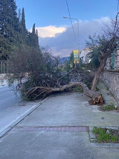 İzmir'de dünden bu yana etkili olan ve hızı zaman zaman saatte 100 kilometreyi bulan fırtına nedeniyle İzmir Büyükşehir Belediyesi ekipleri yoğun mesai harcadı.