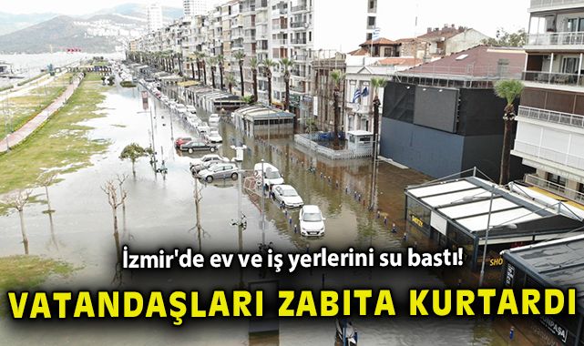 İzmir'de ev ve iş yerlerini su bastı, mahsur kalanları zabıta kurtardı