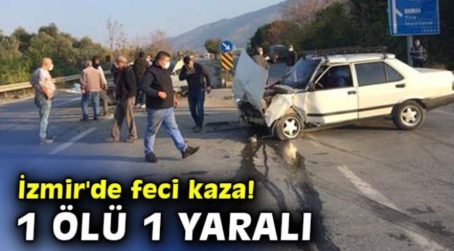 İzmir'in Tire ilçesinde iki otomobil çarpıştı, sürücülerden biri hayatını kaybetti diğeri yaralandı.