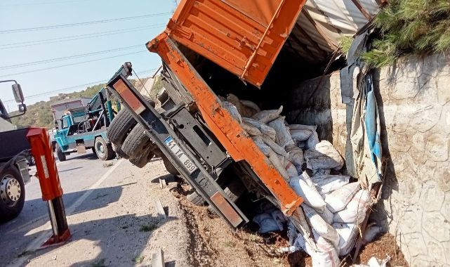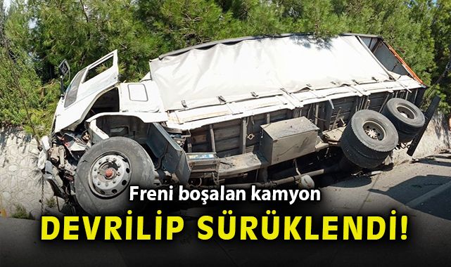 Kaza saat 12.00 sıralarında Manisa İzmir Karayolu Bornova Yeni Mezarlığı mevkiinde meydana geldi. Edinilen bilgiye göre freni boşalan A.B. (27) idaresindeki 41 TA 899 plakalı kamyon, sürücüsünün manevra yapması üzerine yol kenarındaki su kanalına devrildi. Yaklaşık 200 metre sürüklenen kuru üzüm yüklü kamyonun kasasında bulunan kuru üzüm çuvalları yola devrildi. Yol kenarındaki bariyerlerin de devrildiği kazayı gören diğer sürücülerin ihbarı üzerine kaza yerine polis ve sağlık ekipleri sevk edildi. Kazada hafif yaralanan sürücü A.B., sağlık ekipleri tarafından Ege Üniversitesi Tıp Fakültesi Hastanesine götürüldü.