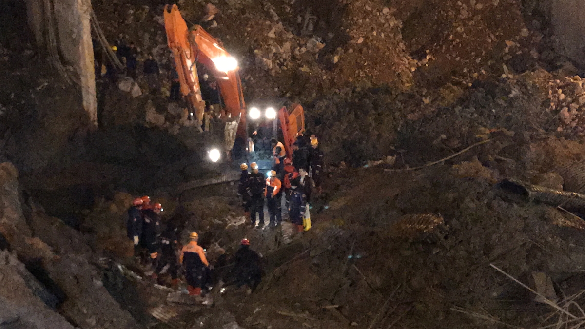 bildirmiş, göçük altında kaldıkları tespit edilen bekçiler için kurtarma