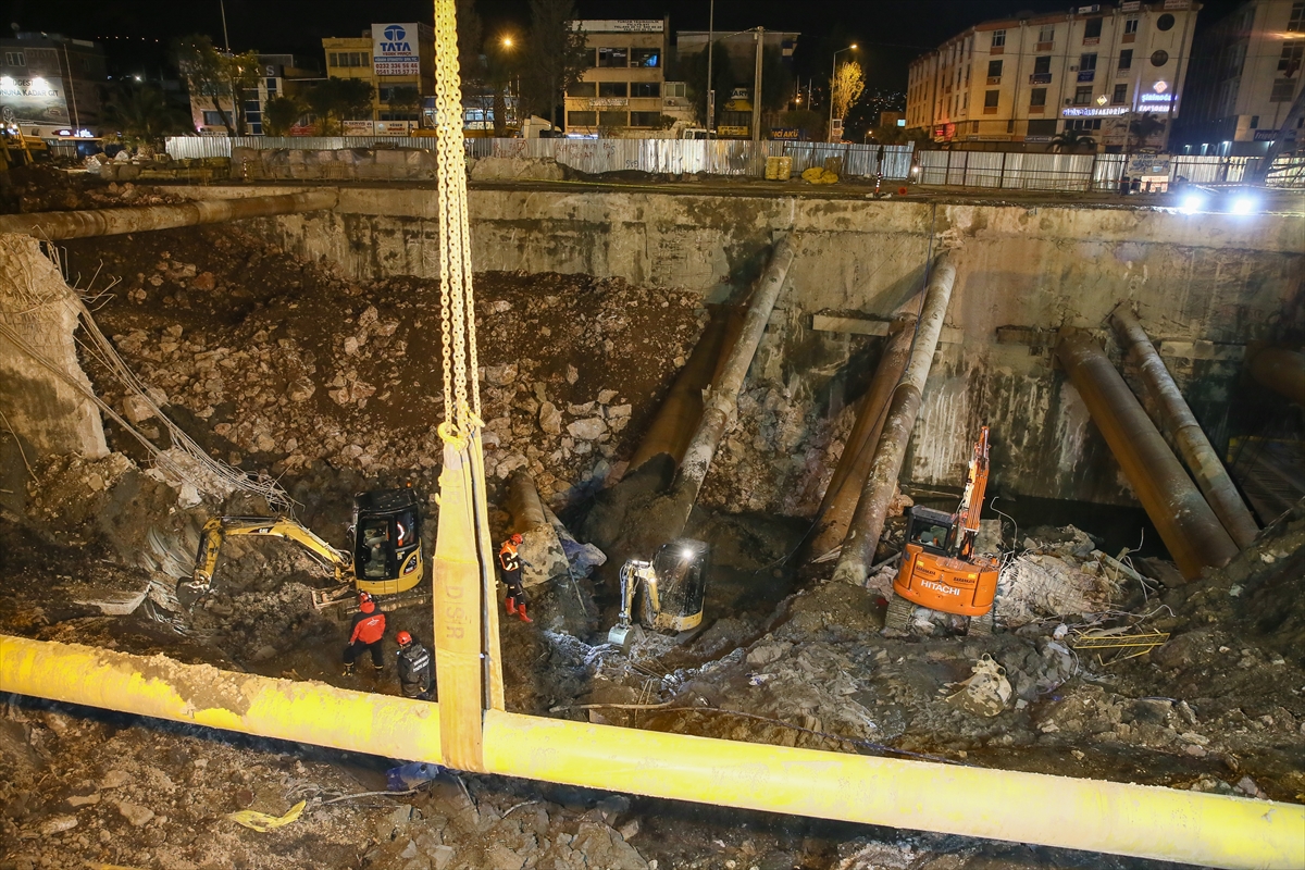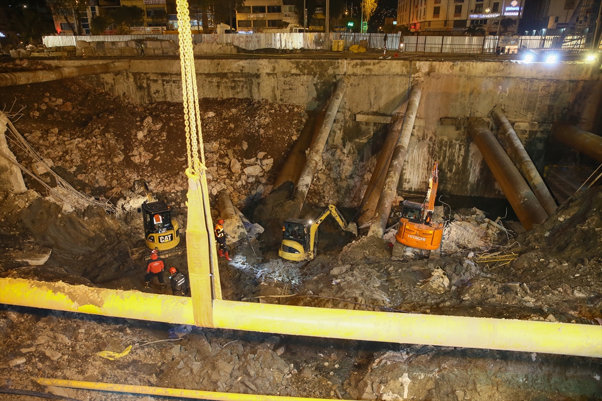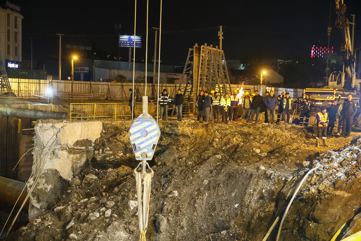 İzmir Büyükşehir Belediyesince, metro vagonları için yapılan yer altı park alanının inşaatında göçük meydana geldi. Göçük altında kaldığı tahmin edilen 2 bekçiyi arama çalışmaları akşam saatlerinde de devam etti. AKS ve AFAD ekipleri iş makineleriyle 2 bekçiyi arama çalışmalarını sürüyor.