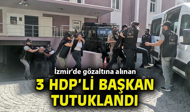 Gözaltına alınarak İzmir İl Emniyet Müdürlüğü Terörle Mücadele (TEM) Şube Müdürlüğü’ne götürülen şüpheliler, buradaki işlemlerinin ardından adliyeye sevk edildi. Şüpheliler HDP İzmir il Eşbaşkanı Vedat Çınar Altan ve Berna Çelik ile Buca İlçe Başkanı Nihat Türk, çıkarıldığı hakimlikçe tutuklandı.