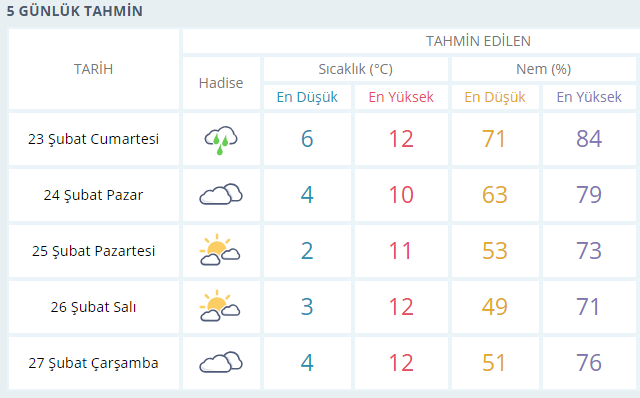 İşte İzmir için merak edilen 5 günlük hava tahmini;