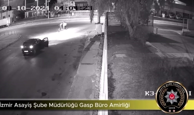 Öte yandan, şüphelilerin gece vakti genç bir kızın önünü keserek çantasını zorla alıp araca binerek uzaklaştıkları anlar ise güvenlik kamerasına yansıdı.