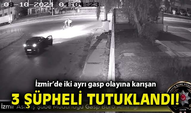 Edinilen bilgiye göre geçtiğimiz pazartesi ve salı günü, Bornova ilçesinde gece saatlerinde gerçekleşen iki ayrı gasp olayında, iki ayrı mağdur vatandaşın cep telefonlarını ve paralarını zorla alarak darp eden U.P, E.S ve A.K .,isimli şüpheliler, Asayiş Şube Müdürlüğü Gasp Büro Amirliği ve SAM Büro görevlilerince yapılan çalışmalarla tespit edilerek yakalandı. Aynı gün adli makamlara sevk edilen 3 şüpheli de çıkarıldıkları mahkeme tarafından tutuklanarak cezaevine gönderildi.