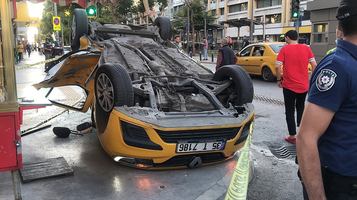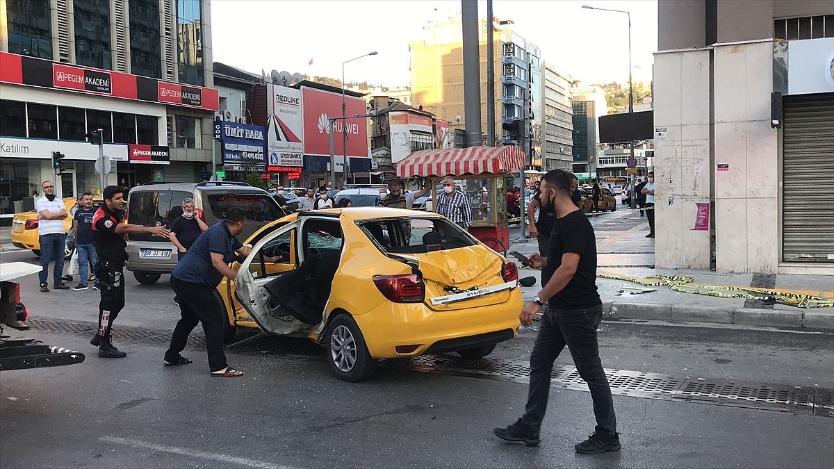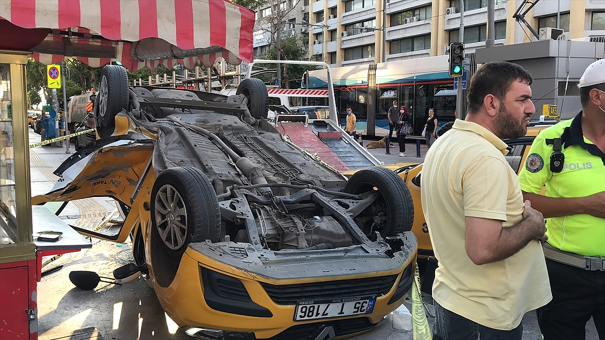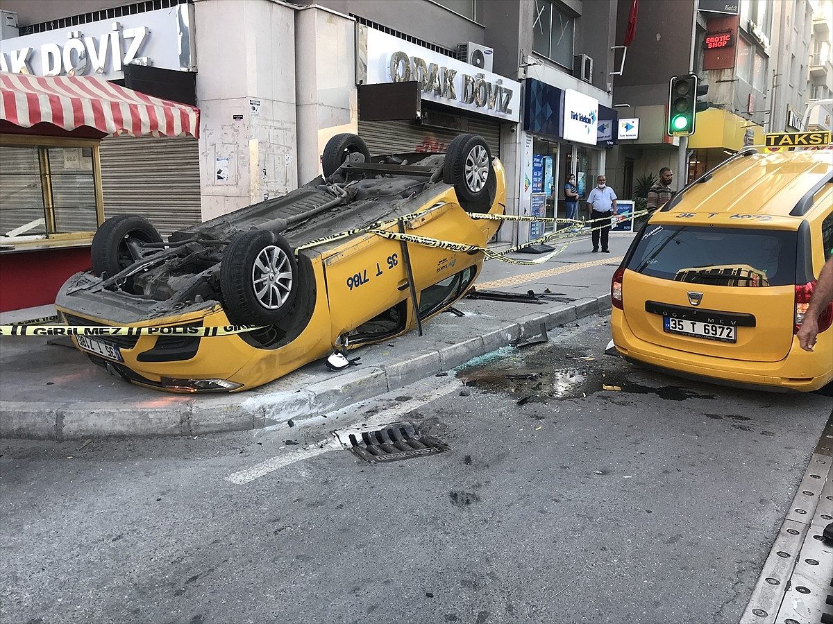 Şair Eşref Bulvarı'ndan Eşrefpaşa yönüne giden H.Y. yönetimindeki 35 T 6972 plakalı taksi, Gazi Bulvarı'ndan Basmane yönüne giden H.K. yönetimindeki 35 T 7186 plakalı bir başka ticari taksiyle çarpıştı.H.K'nin kullandığı araç, çarpışmanın etkisiyle takla atarak ters döndü. İhbar üzerine kaza yerine sağlık ve polis ekipleri sevk edildi. Sağlık ekipleri, her iki şoförü ambulanslarla çevredeki hastanelere kaldırdı. Bozyaka Eğitim ve Araştırma Hastanesine kaldırılan yaralılardan H.K'nin hayati tehlikesinin bulunduğu bildirildi.Kaza nedeniyle, Çankaya ve Basmane semtlerindeki araç trafiğinde yoğunluk oluştu. Araçların çekicilerle kaldırılmasının ve yolun temizlenmesinin ardından trafik normale döndü.