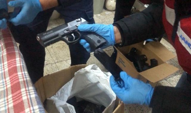 İzmir İl Jandarma Komutanlığı ekipleri, Karabağlar ilçesi Tahsin Yazıcı Mahallesi'nde B.E. ve H.B. adlı şüphelilere ait bir depoda çok sayıda ruhsatsız silah bulundurulduğu ve ticaretinin yapıldığına dair bilgi üzerine çalışma başlattı. Kaçakçılık ve Organize Suçlarla Mücadele (KOM) Şube Müdürlüğü, İstihbarat Şube Müdürlüğü ve Karabağlar İlçe Jandarma Komutanlığı ekipleri, İzmir Cumhuriyet Başsavcılığının koordinesinde 21 Mart günü adrese operasyon gerçekleştirdi. Operasyonda, 64 adet ruhsatsız tabanca, 63 boş şarjör, 15 tabanca fişeği ve muhtelif tabanca parçaları ele geçirildi.Operasyonda, olayla ilgili B.E. ve H.B. adlı 2 şüpheli, jandarma ekipleri tarafından gözaltına alınırken, şüphelilerin işlemlerini sürdüğü öğrenildi.