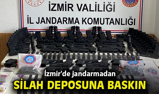 İzmir'in Karabağlar ilçesinde jandarma ekiplerince bir depoya gerçekleştirilen baskında, 64 adet ruhsatsız tabanca ele geçirildi. Yasa dışı silah ticareti yaptığı suçlamasıyla 2 şüpheli gözaltına alındı.