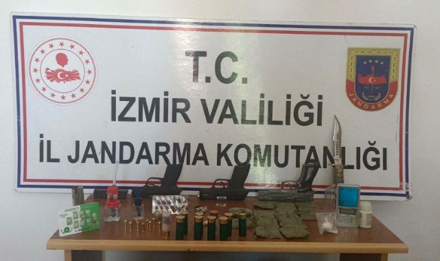 İzmir İl Jandarma Komutanlığı ekiplerinin uyuşturucu madde ticareti ve kullanımının önlenmesi maksadıyla yürütülen çalışmaları çerçevesinde, Bergama ilçesi Kurtuluş Mahallesi'nde bir evde uyuşturucu ticareti yapıldığı belirlendi. Bergama Cumhuriyet Başsavcılığının koordine ve talimatlarıyla, Bergama İlçe Jandarma Komutanlığı ekipleri tarafından adrese dün gerçekleştirilen operasyonda, şüpheliler N.D. ve S.Ü. gözaltına alındı. Adreste yapılan aramada ise bir miktar uyuşturucu madde, hassas terazi, uyuşturucu kullanmaya yarayan aparatlar, ruhsatsız tabanca, tüfek ile fişek ve kartuşları ele geçirildi.