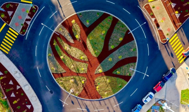 İzmir Büyükşehir Belediyesi, kavşak ve refüjler başta olmak üzere kamusal alanları özgün ve sürdürülebilir peyzaj tasarımlarıyla yeniliyor. Trafik güvenliği gözetilerek hazırlanan düzenlemeler, su tasarrufu sağlayan bitki seçimleriyle kente uzun ömürlü ve estetik bir görünüm kazandırıyor.