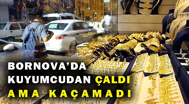 İzmir'in Bornova ilçesinde bir kuyumcudan 5 tek taş yüzük çalıp kaçmak isteyen şüpheli, koşarken taşa takılınca yakalandı.