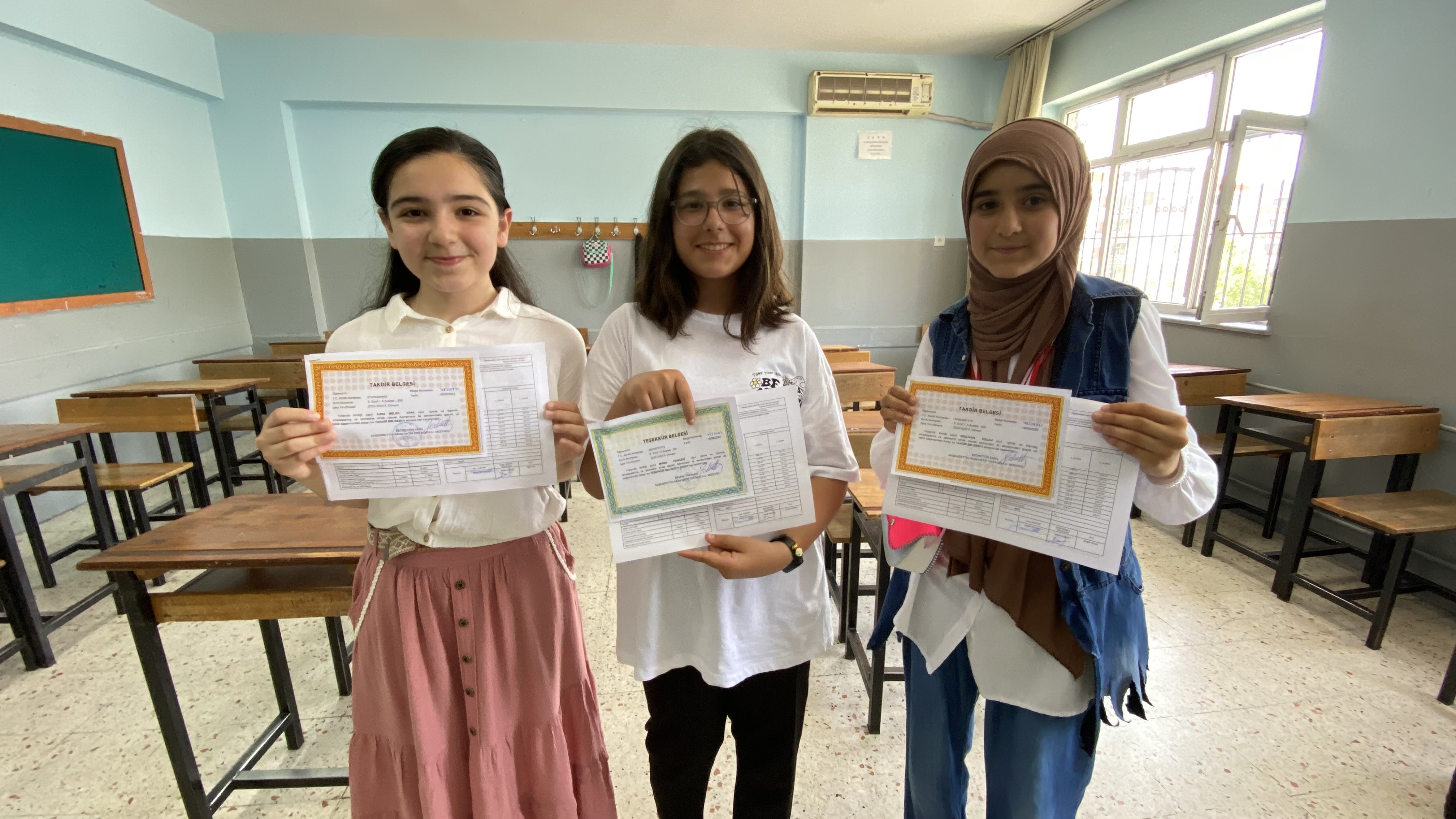 Bu yıl okulu teşekkür belgesi alarak tamamladığını ifade eden Mısra Yeniçeri ise “Seneye daha başarılı olmak istiyorum. LGS çalışmaya başlayacağım. Babamdan karne hediyesi olarak telefon istiyorum. Alabilirse çok mutlu olacağım. İnşallah alır” diye konuştu.