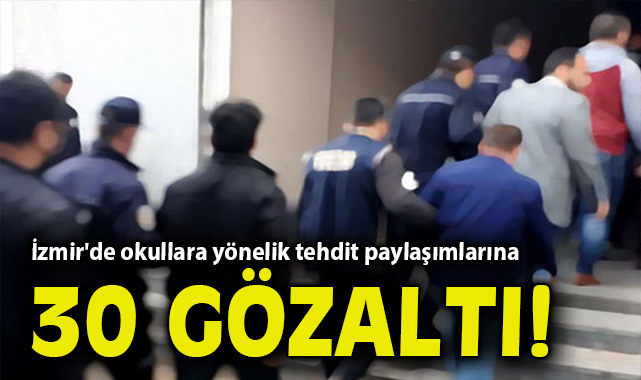 Eğitim kurumlarını hedef alan tehdit içerikli sosyal medya paylaşımları ve ihbarlar üzerine başlatılan ve İzmir Cumhuriyet Başsavcılığı tarafından yürütülen soruşturmada 30 şüpheli gözaltına alındı.