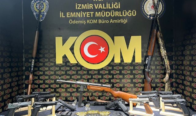 İzmir Organize Suçlarla Mücadele Şube Müdürlüğü Ödemiş Büro Amirliği ve İstihbarat Şube Müdürlüğü ekipleri, Tire'de ikamet eden 5 şüphelinin silah imalatı ve ticareti yaptığı bilgisi üzerine çalışma başlattı. Savcılıktan alınan izinle operasyon için düğmeye basan ekipler, şüphelilerin ev ve iş yerlerinde arama gerçekleştirdi. Yapılan aramalarda; 1 otomatik piyade tüfeği, 13 ruhsatsız tabanca, 5 ruhsatsız tüfek, 275 tabanca fişeği ve çok sayıda namlu açma için kullanılan teknik malzeme ele geçirildi.Olayla ilgili gözaltına alınan 5 şüpheli sorgulanmak üzere emniyete götürüldü.