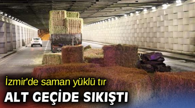 İzmir'de saman yüklü tır alt geçide sıkıştı