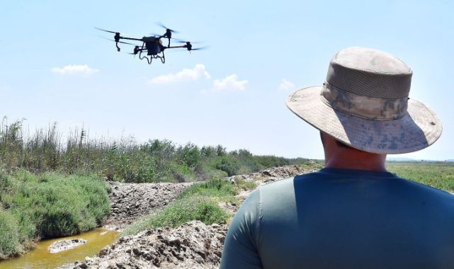 “İnsan gücü ile ulaşmak zor”İzmir Büyükşehir Belediyesi Çevre Koruma ve Kontrol Dairesi Başkanlığı bünyesindeki Vektör Mücadele Birimi Mesul Müdürü Gülşah Erginer Mumen, dron ile yapılan ilaçlamaya dair şu bilgileri verdi: “Haziran ayındaki yağışların etkisi ile ekiplerimizin ulaşma imkanı bulamadığı bölgelerde, çalışmalarımızı dron yardımı ile sürdürüyoruz. Gediz Deltası’nın Foça Bağarası ile birleştiği bölüm, sivrisineklerin üreme alanlarından. Bu nedenle popülasyon fazla. Rüzgarın hızı ile birlikte bunların yerleşim yerlerine, şehir merkezlerine taşınması da çok kolay. Buraya insan gücü ile ulaşmak ise hayli zor. O nedenle bölgede sivrisineklerle mücadele yöntemlerimizin başında dron ile ilaçlama geliyor” dedi.