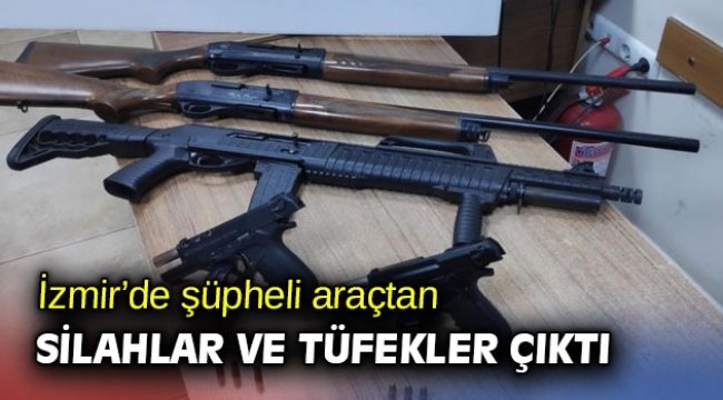 İzmir'de şüpheli araçtan silahlar ve tüfekler çıktı