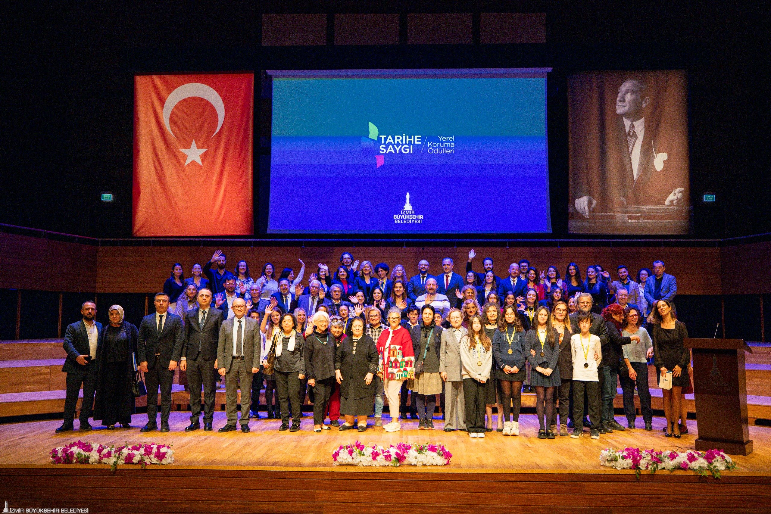 İzmir Büyükşehir Belediyesi’nin kentteki tarihi yapıların korunması, onarılması, kentsel ve yerel koruma bilincinin oluşturulması amacıyla düzenlediği Tarihe Saygı Yerel Koruma Ödülleri sahiplerini buldu. Bu yıl 21’inci kez düzenlenen Tarihe Saygı Yerel Koruma Ödülleri’ni kazananlar, İzmir Büyükşehir Belediye Başkanı Dr. Cemil Tugay'ın ev sahipliğinde yapılan törenle onurlandırıldı. Başkan Tugay, “İzmir’in geçmişine saygı duyan, geleceğini önemseyen tüm yurttaşlarımızla birlikte bu yolu kararlılıkla yürümeye devam edeceğiz” dedi.
