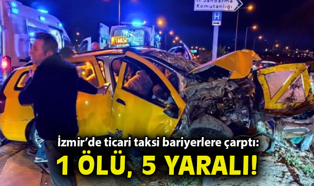 İzmir'de ticari taksi bariyerlere çarptı: 1 ölü, 5 yaralı
