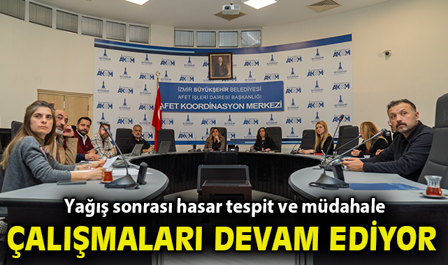 İklim değişikliği nedeniyle yağışların artık olağan akışının dışında seyrettiğine dikkat çeken Afet İşleri Dairesi Başkanı Eylem Ulutaş Ayatar, “Böyle kritik dönemlerde yaşanan olumsuzluklara hızlı ve etkili müdahale edebilmek için kriz masamızı topluyoruz. Bu süreçte Afet Koordinasyon Merkezi (AKOM) devreye giriyor ve çalışmaları AKOM üzerinden koordine ediyoruz” dedi. Hafta sonu yağışların devam edeceğini belirten Ayatar, Meteoroloji’den alınan verilere göre yarın Menderes ve Seferihisar ilçelerinde geçiş yağışlarının, pazar günü ise Aliağa çevresinde yağış beklendiğini ifade etti. Ayatar, “Bu süreçte ekiplerimiz sahada olacak. Sadece saha birimlerimiz değil, destek birimlerimiz de dâhil olmak üzere tüm birimlerimiz olası olumsuzluklara karşı teyakkuz halinde görev yapacak” diye konuştu.
