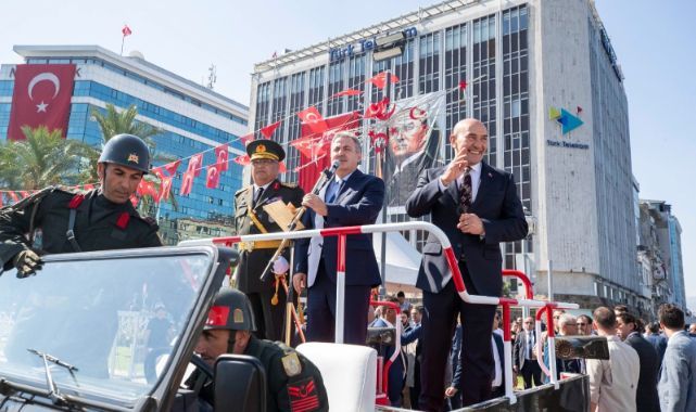 30 Ağustos Zafer Bayramı kutlamaları Cumhuriyet Meydanı’nda düzenlenen geçit töreniyle devam etti. Törende İzmir milletvekilleri, ilçe belediye başkanları, siyasi partilerin il ve ilçe başkanları, oda, birlik ve sivil toplum kuruluşu başkanları, rektörler ve İzmirliler yer aldı. Törende protokol, ilk olarak tören birliklerini selamlayıp İzmirlilerin bayramını kutladı. Kara, hava ve deniz birliklerinin resmi geçidine yurttaşlar marşlarla eşlik etti.