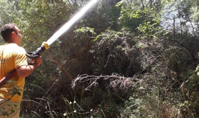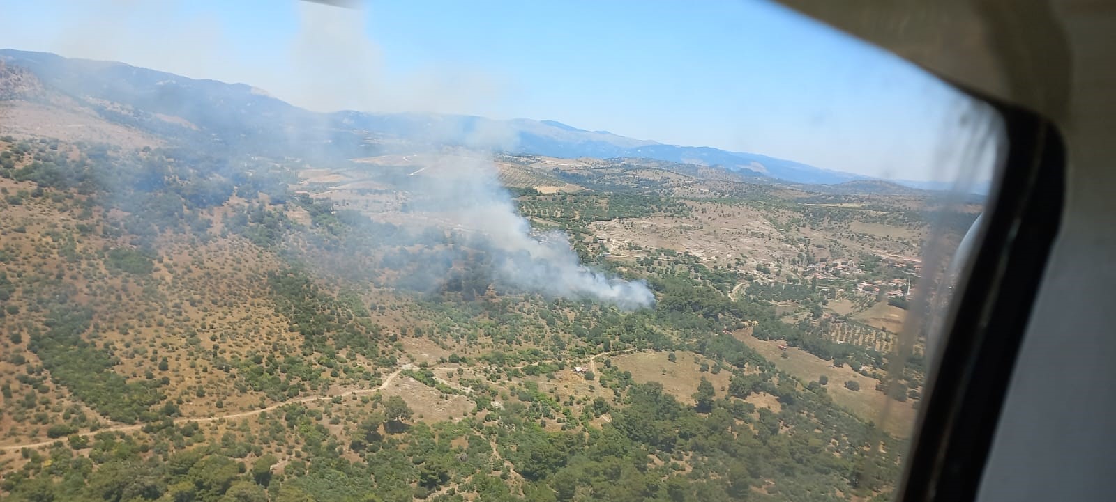 Yangın, saat 12.45 sıralarında Yukarıkırıklar Mahallesi’ndeki ormanlık alanda meydana geldi. İhbar üzerine adrese İzmir Orman Bölge Müdürlüğüne bağlı 2 helikopter, 2 uçak ve 10 arazöz sevk edildi. Ekiplerin alevleri kontrol altına alma çalışmaları devam ediyor.