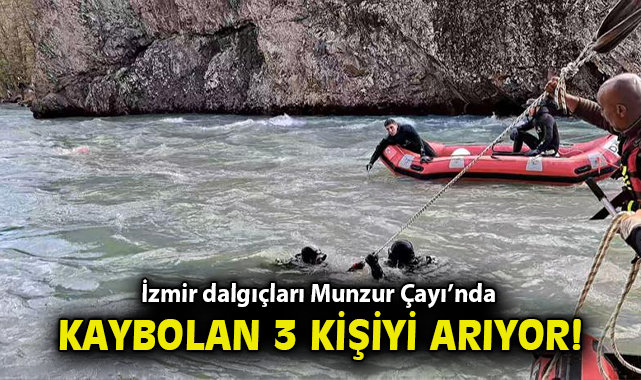 İzmir Büyükşehir Belediyesi İtfaiye Dairesi Başkanlığı Suda Arama Kurtarma Ekibi’ne bağlı dalgıçlar, Tunceli’nin Munzur Çayı’nda kaybolan Baran Aslantaş, Azad Demiral ve Mehmet Can Demiral'ın bulunması için bölgede yürütülen çalışmalara destek veriyor. Tunceli İtfaiyesi ve bölgeye diğer illerden gelen itfaiye ekipleri ile birlikte çalışan İzmir Büyükşehir Belediyesi dalgıçları, zaman zaman debisi yükselen ve su sıcaklığı yaklaşık 6 santigrat derece olan Munzur Çayı’nda kayıp 3 kişiyi bulmak için günlerdir bölgede çalışma yürütüyor.Dalgıçlar ses dalgaları ile çalışan ve suyun altındaki cisimlerin boyutunu, uzaklığını, sahip olduğu verileri tespit eden sonar cihazı ile dip taraması yapıyor. Sonar cihazından elde edilen veriler doğrultunda Munzur Çayı’nda şüpheli bulunan yerlerde dalış yapılıyor. Dalgıçlar ayrıca akan su üzerinden de tarama yapıyor. Suyun debisinin yüksek olduğu bölgelerde karşı kıyıya hat çekip rafting botuyla da tarama yapılıyor. Çalışmalar 45 kilometrelik hatta sürüyor.Otomobile ulaşıldı21 Nisan’da Tunceli'nin Ovacık ilçesine Diyarbakır'dan gelen 3 kişi otomobille Munzur Çayı’na düştü. Geçen Salı günü su altında kalan araç düştüğü yerden 200 metre uzaklıkta bir kayanın altında bulundu. Kaybolan 3 kişiyi arama çalışmaları aralıksız devam ediyor.