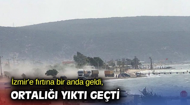 İzmir’de biranda başlayan fırtına, herkesi hazırlıksız yakaladı. Özelikle İzmir’in kuzey ilçeleri olan Aliağa, Dikili, Bergama ilçelerinde etkili olan fırtına hayatı kısa sürede felç etti. O sırada plajda bulunan vatandaşlar, apar topar eşyalarını toplayarak güvenli bir yere geçti. Trafikte bulunan vatandaşlarda rüzgarla zor anlar yaşadı.Etkili olan fırtınayla ilgili Meteoroloji 2.Bölge Müdürlüğü Tahmin ve Erken Uyarı Merkezi’nden uyarı geldi. Yapılan açıklamada, “Meteoroloji radarından alınan verilere göre; bugün 15.30-17.00 saatleri arasında İzmir’in kuzeyinde (Dikili, Bergama, Kınık, Foça, Aliağa, Karaburun, Menemen) yerel olarak gök gürültülü sağanak ve yağış anında fırtına beklendiğinden çatı uçması, ağaç devrilmesi, yıldırım, ulaşımda aksamalar gibi olumsuzluklara karşı dikkatli ve tedbirli olunmalıdır” denildi.