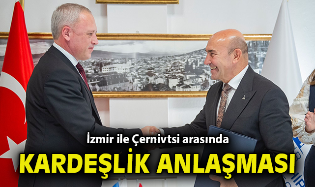 İzmir Büyükşehir Belediyesi ile Ukrayna’nın Çernivtsi kenti arasında “kardeş kent” anlaşması imzalandı. İzmir Büyükşehir Belediyesi Egemenlik Evi’nde düzenlenen törenle atılan imzalar Rusya-Ukrayna savaşı sırasında imzalanan ilk anlaşma olma özelliği de taşıyor. İzmir- Çernivtsi kardeş kent imza törenine İzmir Büyükşehir Belediyesi Danışmanı Onur Eryüce, Çernivtsi Belediye Başkanı Roman Klichuk, Ukrayna Ankara Büyükelçisi Vasyl Bodnar, Çernivtsi Kent Konseyi Sosyo-Ekonomik Kalkınma ve Stratejik Planlama Departmanı Direktörü Serhii Bostan, Ukrayna İstanbul Başkonsolosu Roman Nedilskyi ve İzmir Ukraynalılar Derneği Başkanı Oksana Özek katıldı. İmza töreninin ardından Başkan Tunç Soyer ve Ukrayna heyeti Nefes Restoran’da düzenlenen yemekte bir araya geldi.