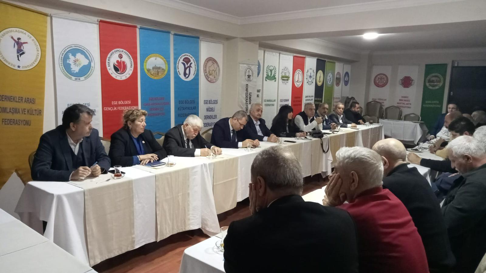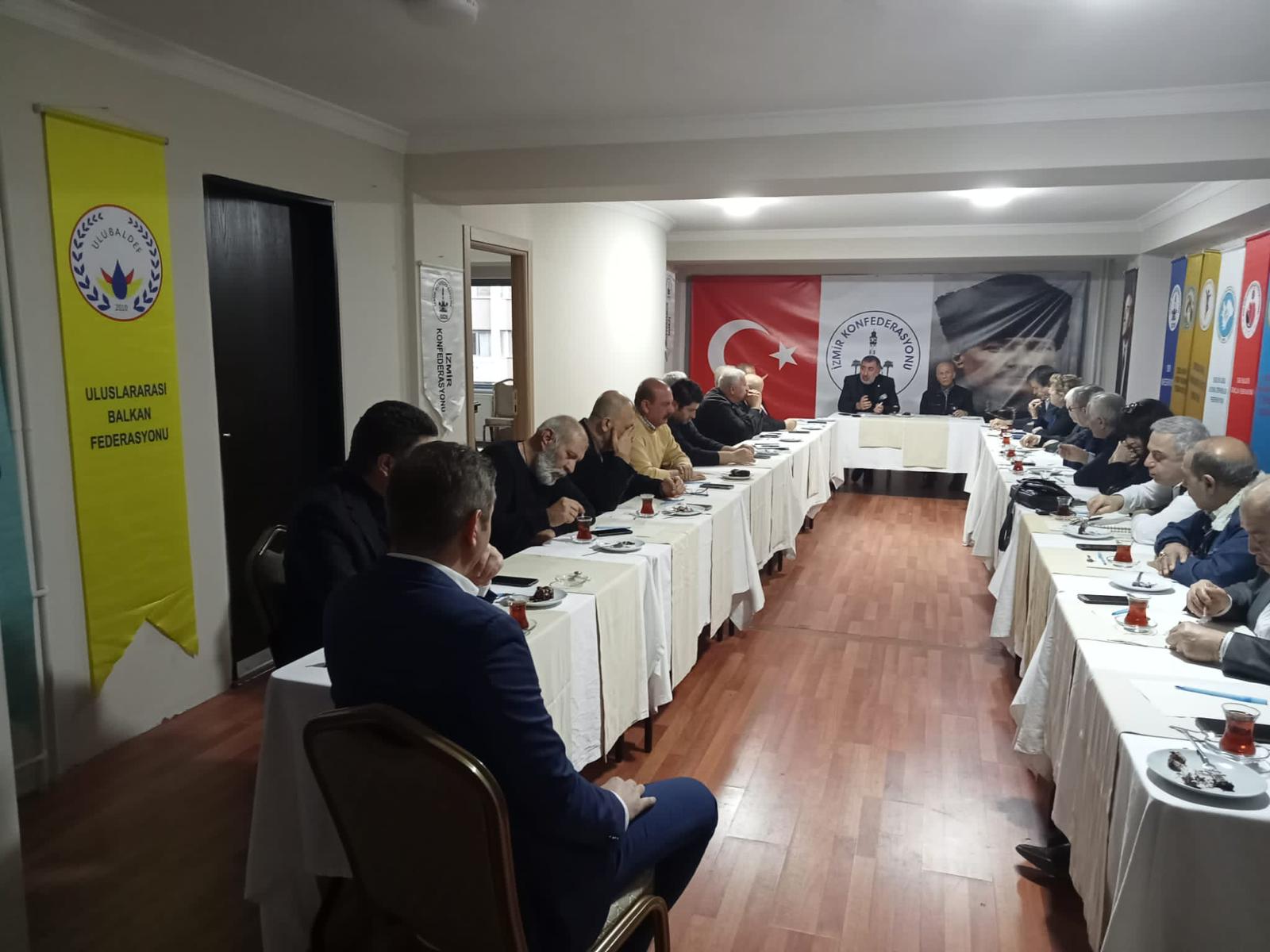 Her zaman birlik ve beraberlik içinde hareket eden İzmir Konfederasyonu, oy birliği ile görev dağılımı konusunda karar aldı. Buna göre;Yönetim Kurulu Başkanı Ferhan ADEMHAN,Başkan Vekili İbrahim YILDIZ,Genel Sekreter Ahmet GÜRAL,Muhasip Ayşe TAYLAN,Gençlik ve Spordan Sorumlu Başkan Yardımcısı Behlül Murat MARAL,Sivil Toplum Kuruluşlarından Sorumlu Başkan Yardımcısı Erhan KAHRAMAN,Kültür ve Sanattan Sorumlu Başkan Yardımcısı Halit ŞAHİN,Ekonomiden Sorumlu Başkan Yardımcısı İbrahim KILINÇ,Bürokrasiden Sorumlu Başkan Yardımcısı İsmail AKARSU,Siyasi Partilerden Sorumlu Başkan Yardımcısı Uğur YELEKLİ,Basından Sorumlu Başkan Yardımcısı Yusuf DEMİR seçildiler.Ayrıca yönetim kurulu üyelerinden Ahmet GÜLTEKİN Engellilerden Sorumlu,Muhasip Ayşe TAYLAN Muhtarlardan sorumlu,Elvan ÇELEN İnanç ve Kültürden Sorumlu,Gülay ŞENGÜL Kadın Konseyinden Sorumlu,Hüseyin ÇAKIR Etkinlik ve Organizasyonlardan Sorumlu, Özcan ÇAYIRLI Romanlardan Sorumlu,Serdar YAVAŞOĞLU Sanayi ve Ticaret Odalarından Sorumlu olmak üzere,Abdülkadir ALKAN, Ertan ÇEVİK, Faysal ÇAYGÖZ ve Yalçın KOCABIYIK yönetim kurulu üyesi olarak belirlendi."