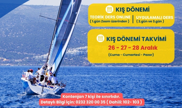 Yetişkinlere yönelik Kış Dönemi Yelken Eğitimleri, 26-27-28 Aralık 2025 tarihlerinde gerçekleştirilecek. Eğitim programı kapsamında, 26 Aralık Cuma günü teorik dersler çevrim içi olarak yapılacak; 27–28 Aralık Cumartesi ve Pazar günleri ise uygulamalı eğitimler İzmir Marina’da gerçekleştirilecek. Üç gün sürecek eğitimin ücreti 8 bin TL olarak belirlendi. Kontenjan 7 kişi ile sınırlı olup, eğitimin açılabilmesi için en az 4 katılımcı gerekiyor. Eğitim saatleri, hava koşullarına bağlı olarak eğitimden bir gün önce katılımcılara bildirilecek. Program, 18 yaş ve üzeri deniz tutkunlarına yönelik olarak planlandı.