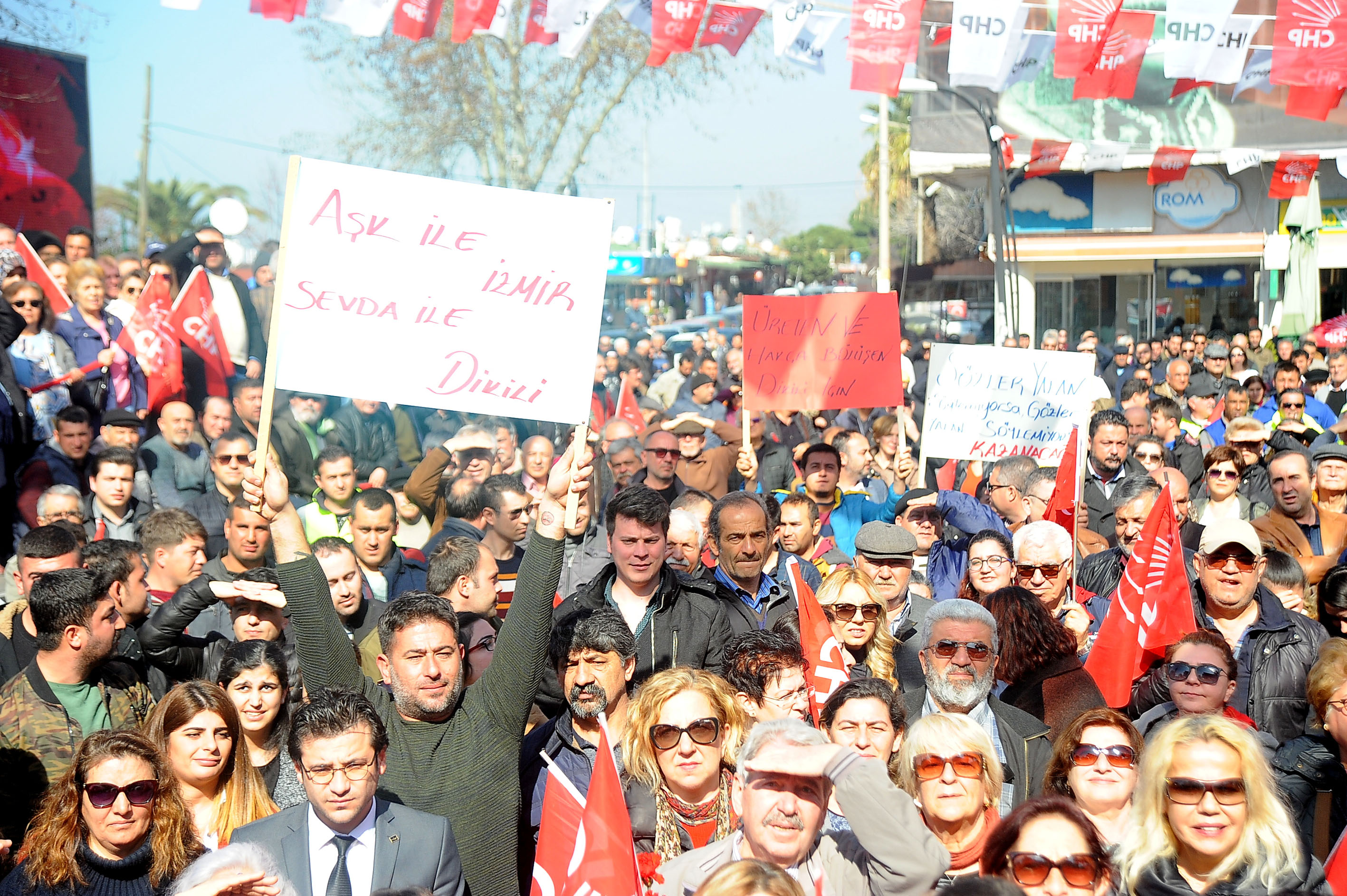 Dikili’de seçim bürosu açılışına katıldı. Coşkulu kalabalık tarafından