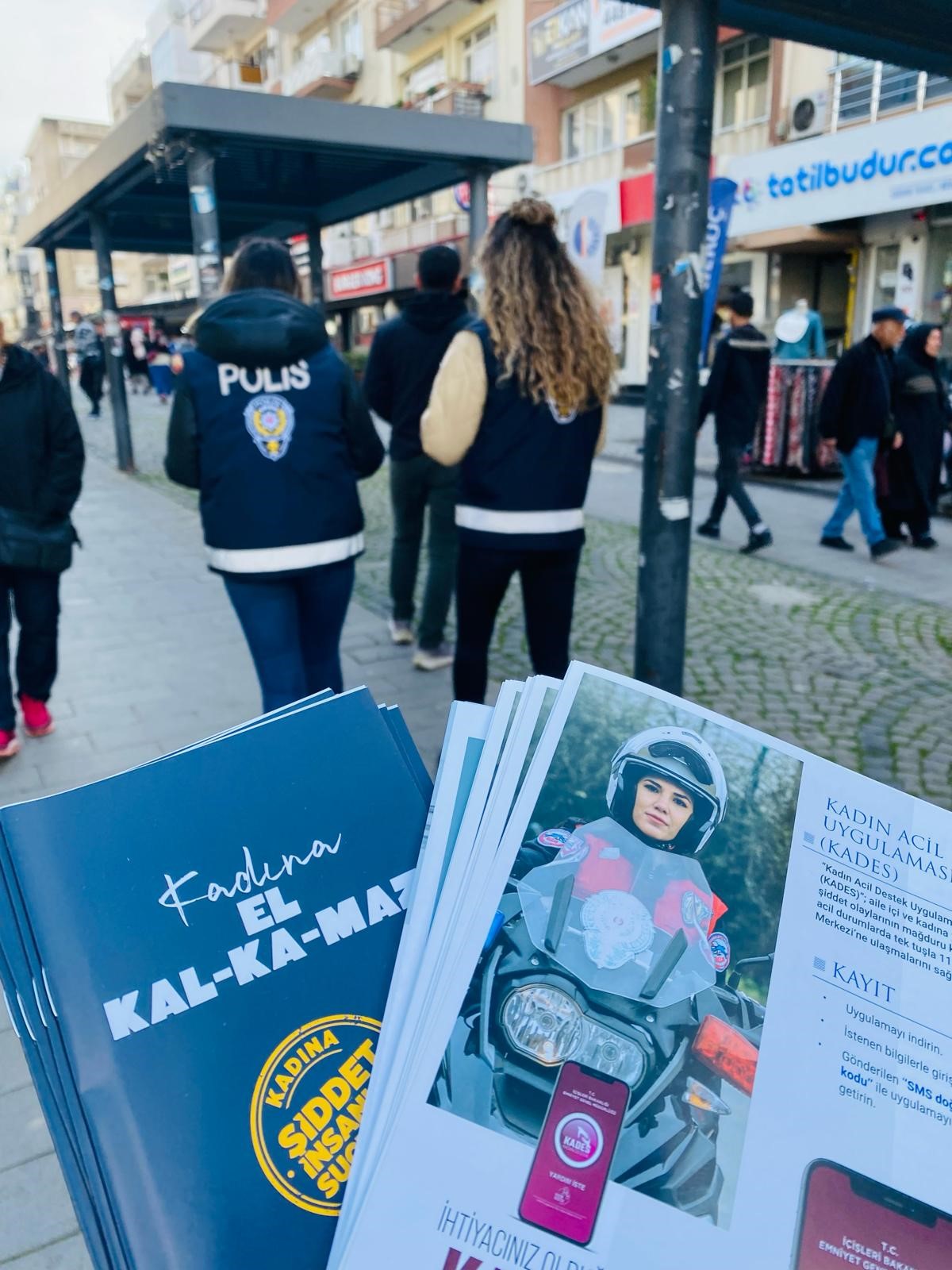 Buca İlçe Emniyet Müdürlüğü ekipleri Buca'nın çeşitli noktalarında, vatandaşlara Kadın Destek Uygulamasını (KADES) tanıtırken aynı zamanda internet ve telefon dolandırıcılığı, otodan hırsızlık, evden hırsızlık, yankesicilik ve benzeri asayiş konularıyla ilgili de bilgilendirme yaptı. Birçok vatandaşla görüşme sağlayan polis ekipleri, çevredeki vatandaşlara ‘KADES, dolandırıcılık, otodan ve evden hırsızlık, yankesicilik ve benzeri asayiş' konuları ile ilgili 4 bin 500 broşür dağıttı.