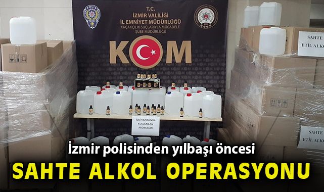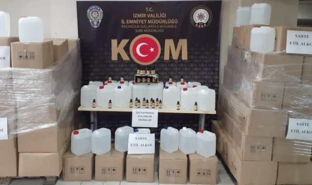 İzmir İl Emniyet Müdürlüğü Kaçakçılık Suçlarıyla Mücadele Şube Müdürlüğü ekipleri, yaklaşan yılbaşı öncesi sahte etil alkol ve içkiden kaynaklı zehirlenme ve ölümlerin önüne geçmek amacıyla, kozmetik ve dezenfektan fabrikaları adı altında faaliyet göstererek, taklit etiketlerle ambalajlanan etil alkolleri vatandaşlara satışa sunan şüphelilere yönelik operasyon gerçekleştirdi. Karşıyaka, Konak, Karabağlar ve Torbalı ilçelerinde, 8 ikamet 1 araç, 1 depo ve 2 iş yerinde yapılan aramalarda; 11 TON 845 litre etil alkol, 4 bin 704 adet boş etil alkol bidonu, 3 bin 243 adet taklit etiket, 133 adet içki aroması, 300 adet koli, 1 adet krom kazan ele geçirildi.