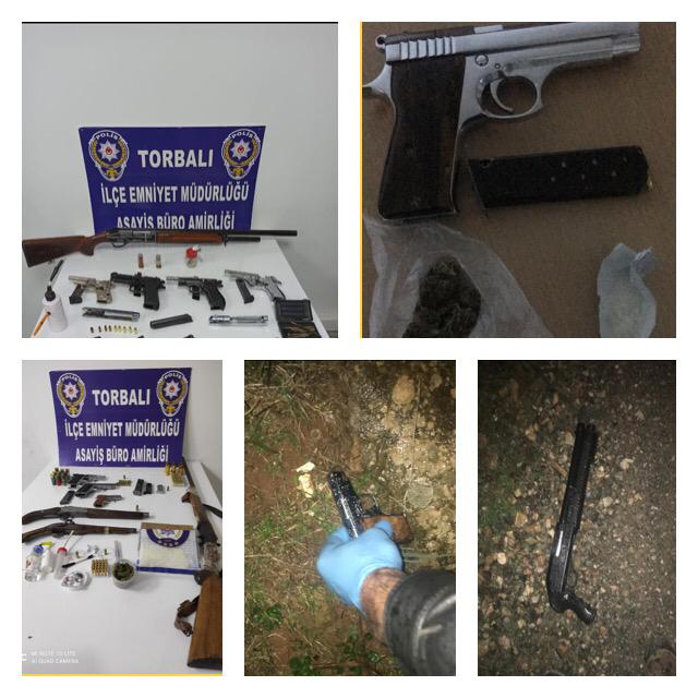 İŞTE OPERASYONUN RAKAMLARITorbalı Harman Operasyonu kapsamında Toplam 20 adreste arama yapılmış olup bu aramalarda; 12 kilo esrar,1 kilo skunk, 6 0gr metamfetamin, 25 gram sentetik esrar,14 tabanca , 6 tüfek ve çok sayıda mühimmata el konulurken, F.B., A.G., R.A., G.G., M.D., N.U., S.U., C.A., B.K., M.S., Y.B., G.A., A.K., N.K., M.B., isimli 15 şahıs tutuklanarak Cezaevine gönderildi. Polisin Torbalı genelinde uyuşturucu madde ticareti yapan ve yaptıran şahıslara ve suç örgütlerine yönelik soruşturmaları devam etmektedir.